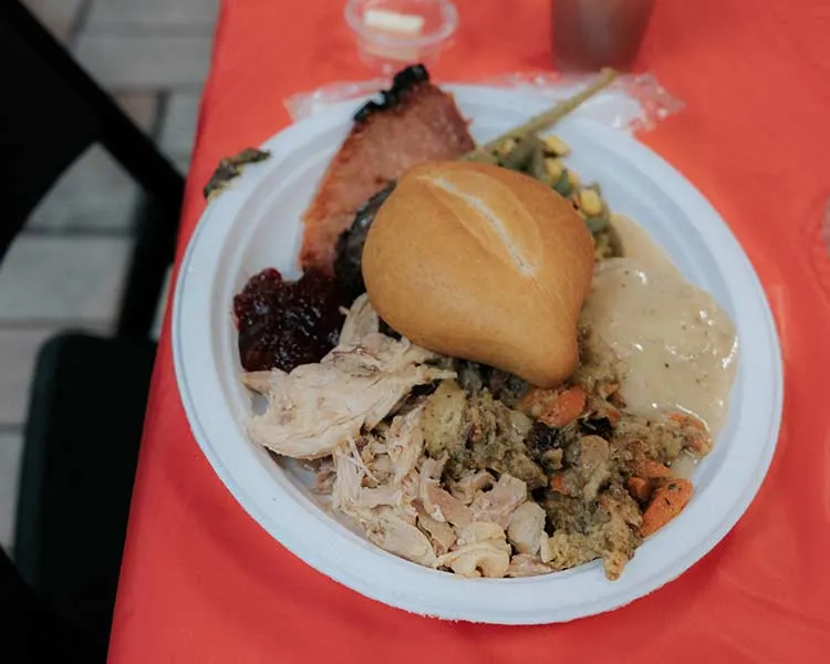 One by one guests began filing into the Mission, finding solace in the warmth of the shelter and contentment as their plates were filled with ham, turkey, mashed potatoes and gravy, stuffing, corn, rolls, pie, and cider.